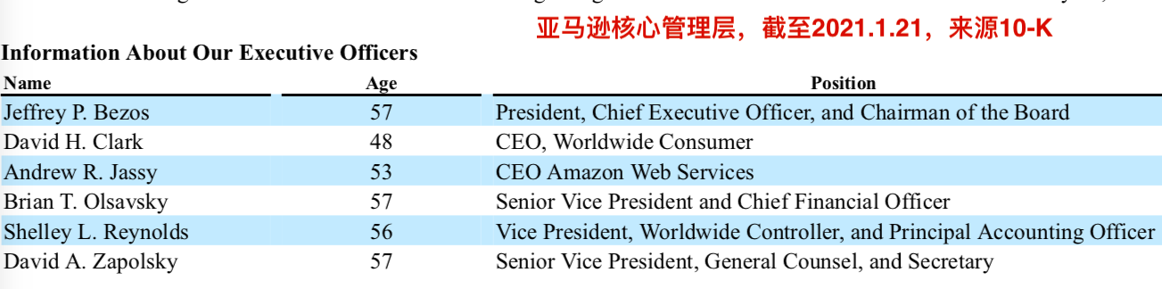 翻看亚马逊历年的年报会发现,这算是一个新角色,之前对贝索斯的职位描述一直是President, Chief Executive Officer, and Chairman of the Board,最后一项即董事会主席。从职能上讲,执行主席与董事会主席是有区别的,前者参与公司经营管理的戏份更多一些,后者更多代表股东利益,当“甩手掌柜”。