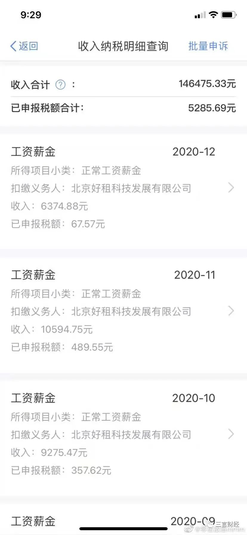 据该网友晒出的工资单图片显示,扣缴义务人为北京好租科技发展有限公司。