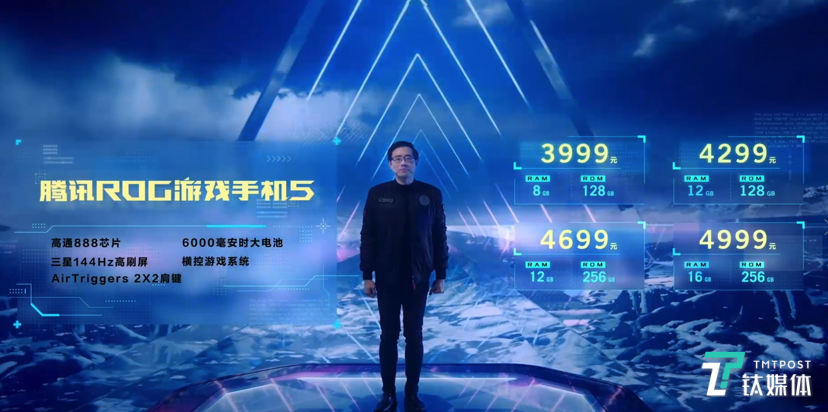 腾讯ROG游戏手机5则共有8+128GB、12+128GB、12+256GB以及16+256GB四个版本,售价分别为3,999元人民币、4,299元人民币2,699元人民币以及4,999元人民币。(本文首发钛媒体App)