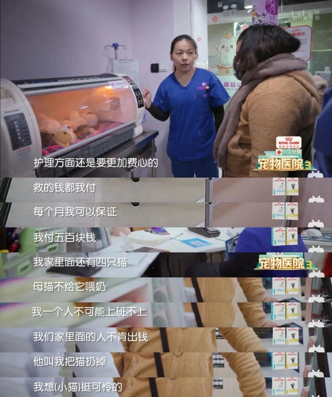 B站上的《宠物医院》第三季里,也有人因为养猫让自己的生活变成了一团乱麻。一个生活在上海的小姐姐,每个月的工资2000多块钱,却收养了两只流浪猫,两只流浪猫又生了三只小猫。