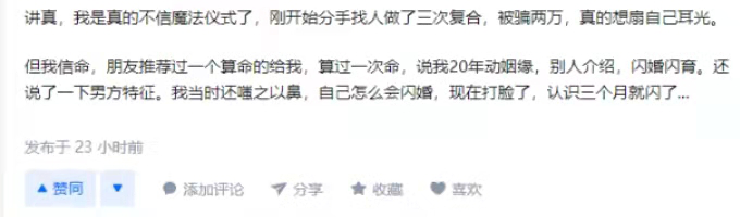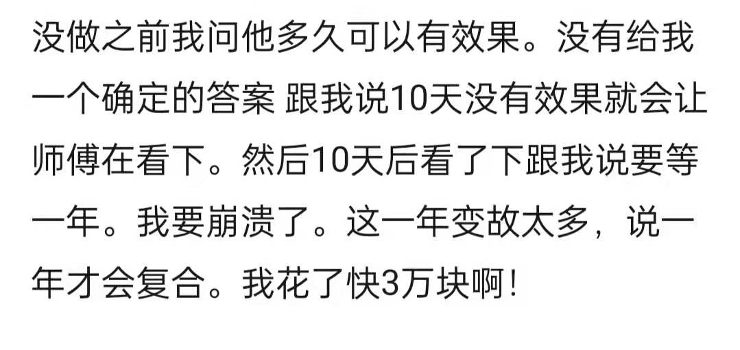 对此,也有一个男网友表示有相同的经历,表示花了3万元做魔法仪式求复合,结果女友却跟着塔罗师跑了,最终人财两空。