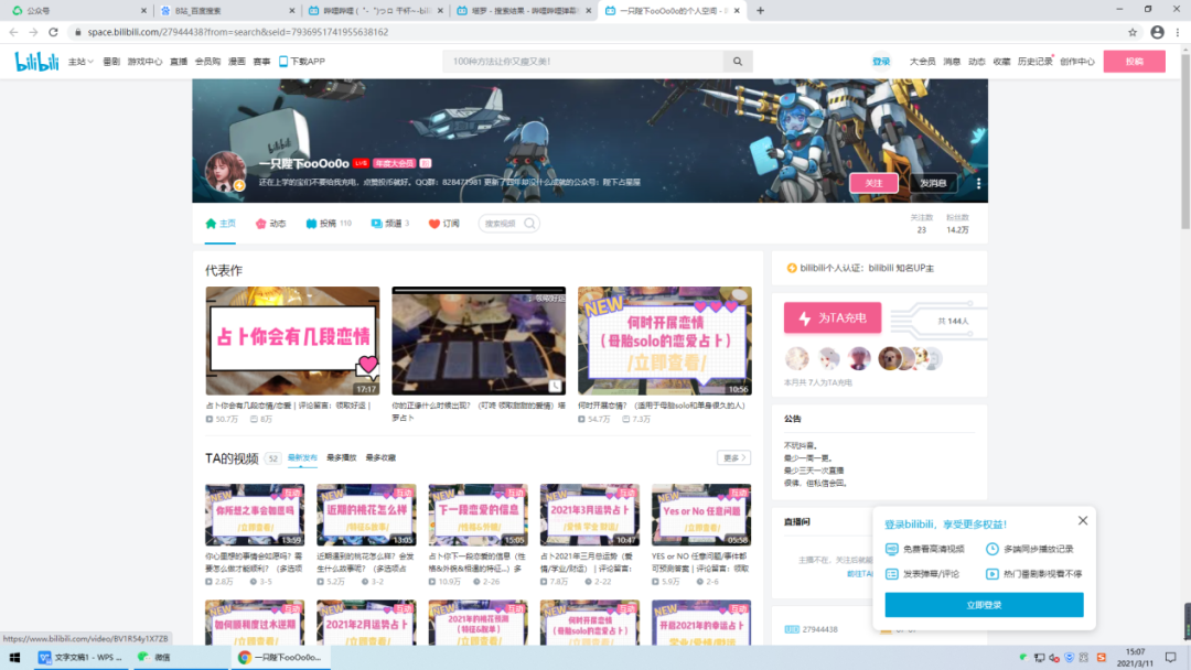 在B站搜索中我们发现,塔罗占卜层出不穷,一条塔罗占卜视频有几十万,甚至上百万的浏览量。