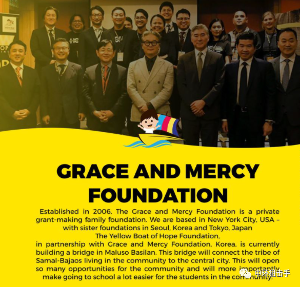 可能很多人不知道,比尔长期资助一个叫The Grace and Mercy Foundation的韩国慈善组织:(下图正中间就)