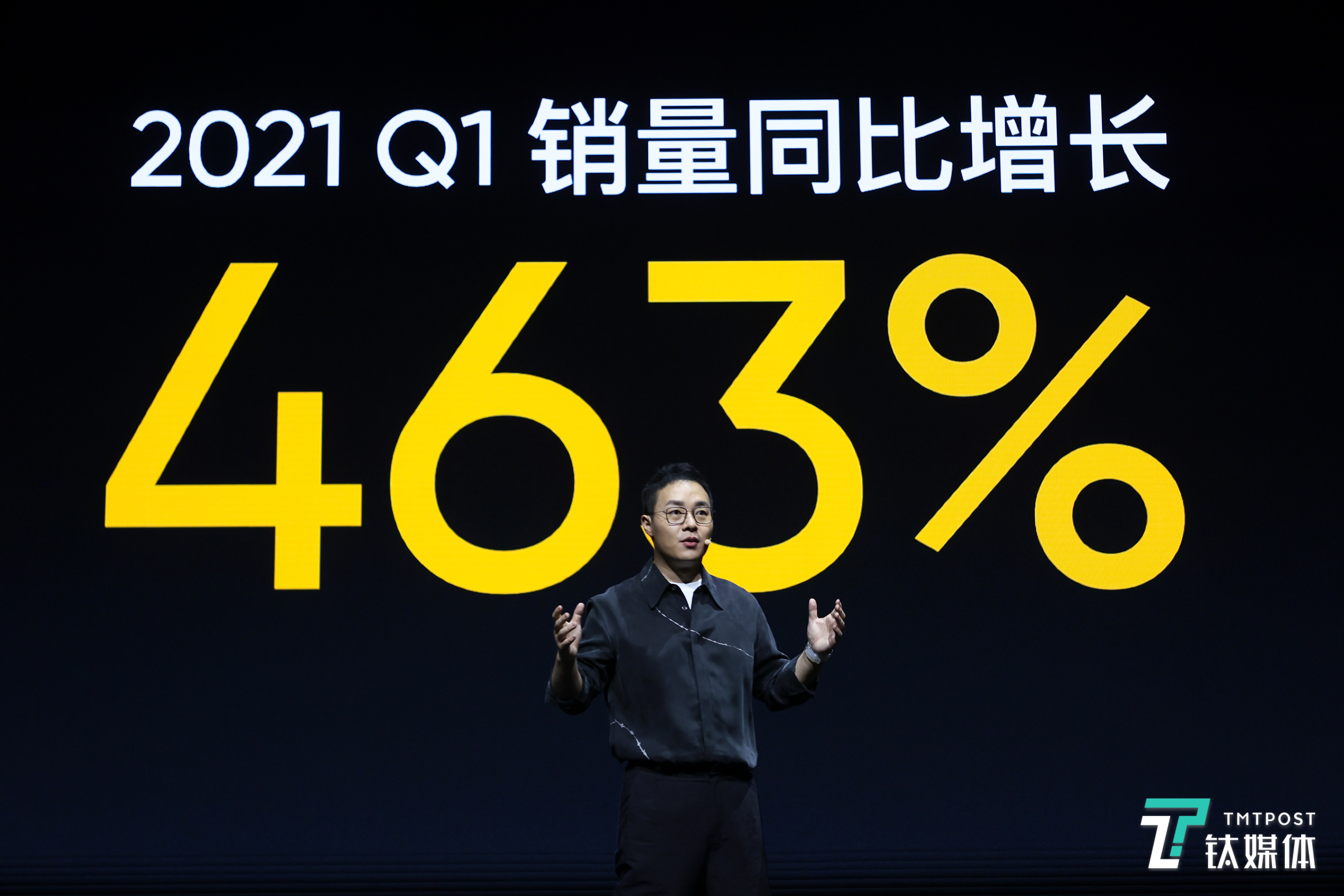 2021年一季度,realme手机销量同比增长463%,接近2020年全年销量。