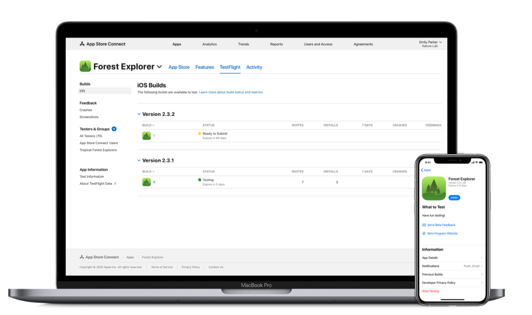 简单来说,TestFlight就是苹果旗下的官方测试平台。通过它,开发者可以邀请用户参与App测试,以方便应用或应用新版本正式发布时能更好地发现问题、完善功能。