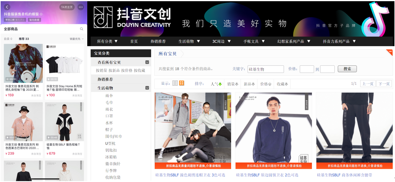 请输入“硅基生物”入驻抖音文创服饰,图片来源:抖音App、天猫旗舰店图说