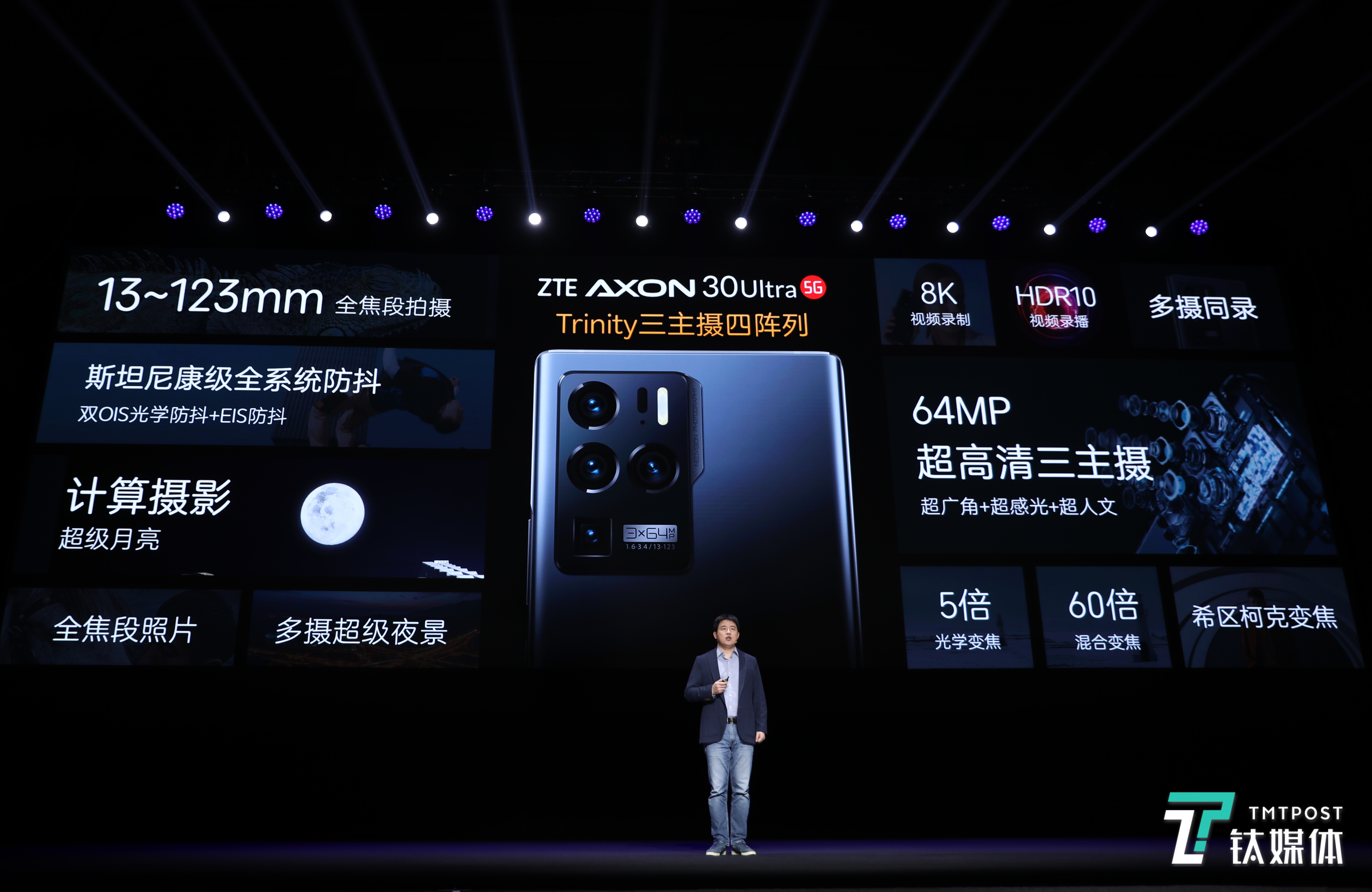 钛媒体4月15日消息,中兴举办了Axon30系列新品线上发布会,正式发布了三主摄四阵列影像旗舰——中兴Axon 30 Ultra。