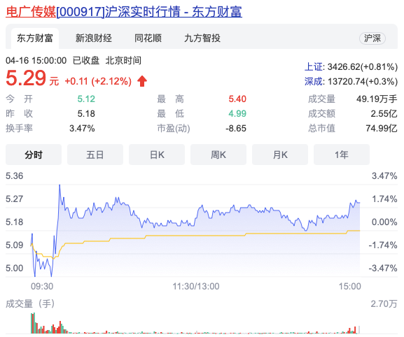 但在4月13日、14日,电广传媒却连续两日涨停。是什么消息面刺激?在4月14日发布的2021年Q1业绩预告中,电广传媒宣布盈利1600万-2200万元,扭亏的盈利数字并不算大,但更重要的信息在变动说明中:除了注册制利好投资业务、疫情好转利好文旅业务之外,电广传媒以全资子公司持有的湖南省有线电视网络(集团)股份有限公司(以下简称“湖南有线”)51%股份出资参与设立中国广电网络股份有限公司,本报告期湖南有线不再纳入公司合并报表范围,所以当期亏损较去年同期减少。