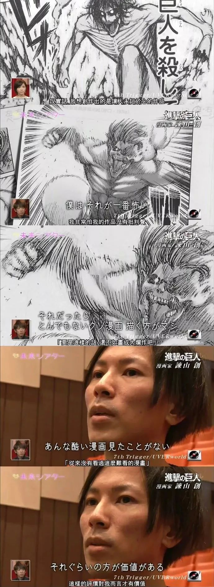 有读者甚至扒出了谏山创此前的采访:“说实话我想创作出让人永记于心的作品,我非常怕我的作品没有批评声,要是这样的话还不如画成大烂作吧。从来没有看到过这么难看的漫画,这样的评价对我而言才有价值。”