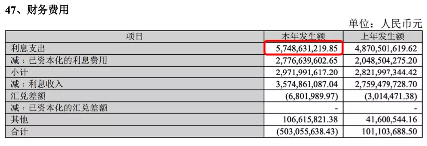 根据财报数据,在2020年3075.92亿元的负债总额中,流动负债总额就达到2289.95亿元,占比高达74%。受此影响,金地2020年因偿债产生的利息成本,就达到57.5亿元(包括已资本化的利息费用)。