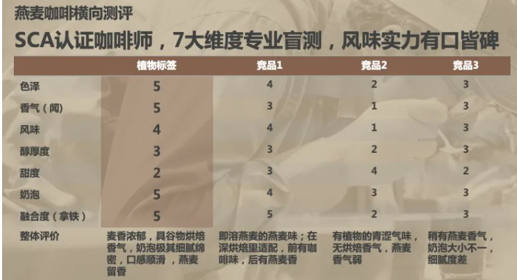 在产品上,燕麦奶产品逻辑是做客户方的产品,突出产品融合的特性。以面向咖啡店的品牌为例,燕麦奶产品的本质逻辑是做咖啡,一方面体现在与咖啡的融合度,是否具备对新口味咖啡产品研发的优势。另一方面,证明产品的适用性,如专业咖啡师背书或咖啡专业维度盲测评审。注重与品牌本身的产品融合度、渠道品牌的受众口味偏好、新品研发及在专业领域的背书。