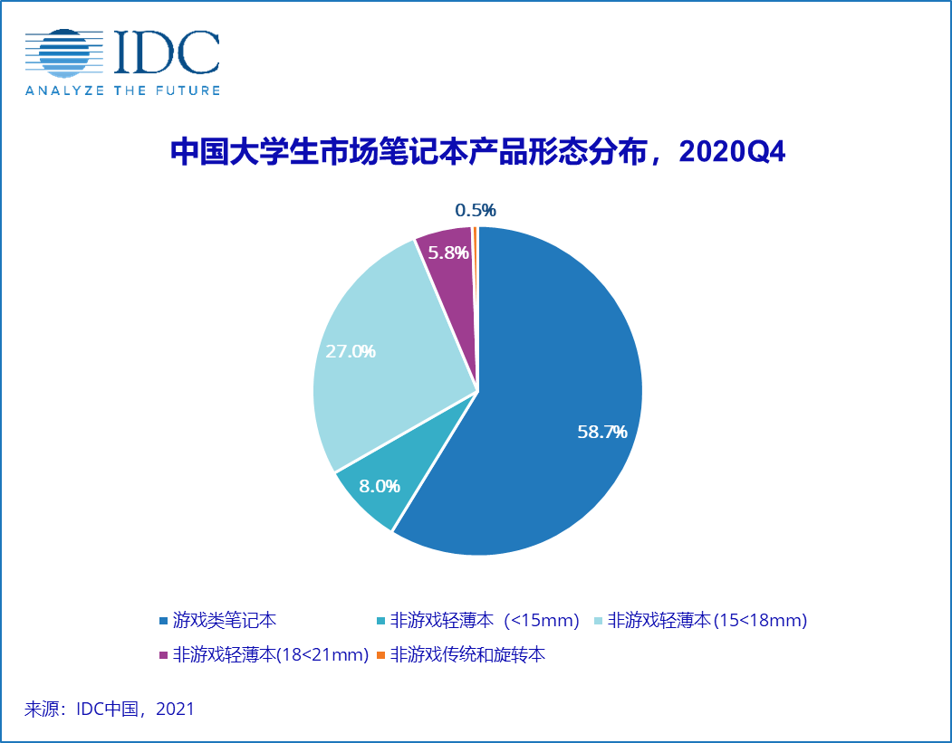 以2020年第四季度为例,IDC发布的市场报告显示,当季中国消费端游戏本销售量约185万台,同比上涨15.5%,其中大学生群体是购买主力。报告还指出,超过半数的大学生在购机时会首选游戏本。