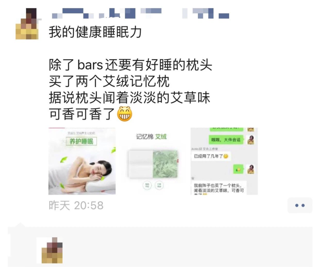 打开悠悠的朋友圈,燃财经发现,她还会借着Bars课程的名义销售“艾草枕头”。