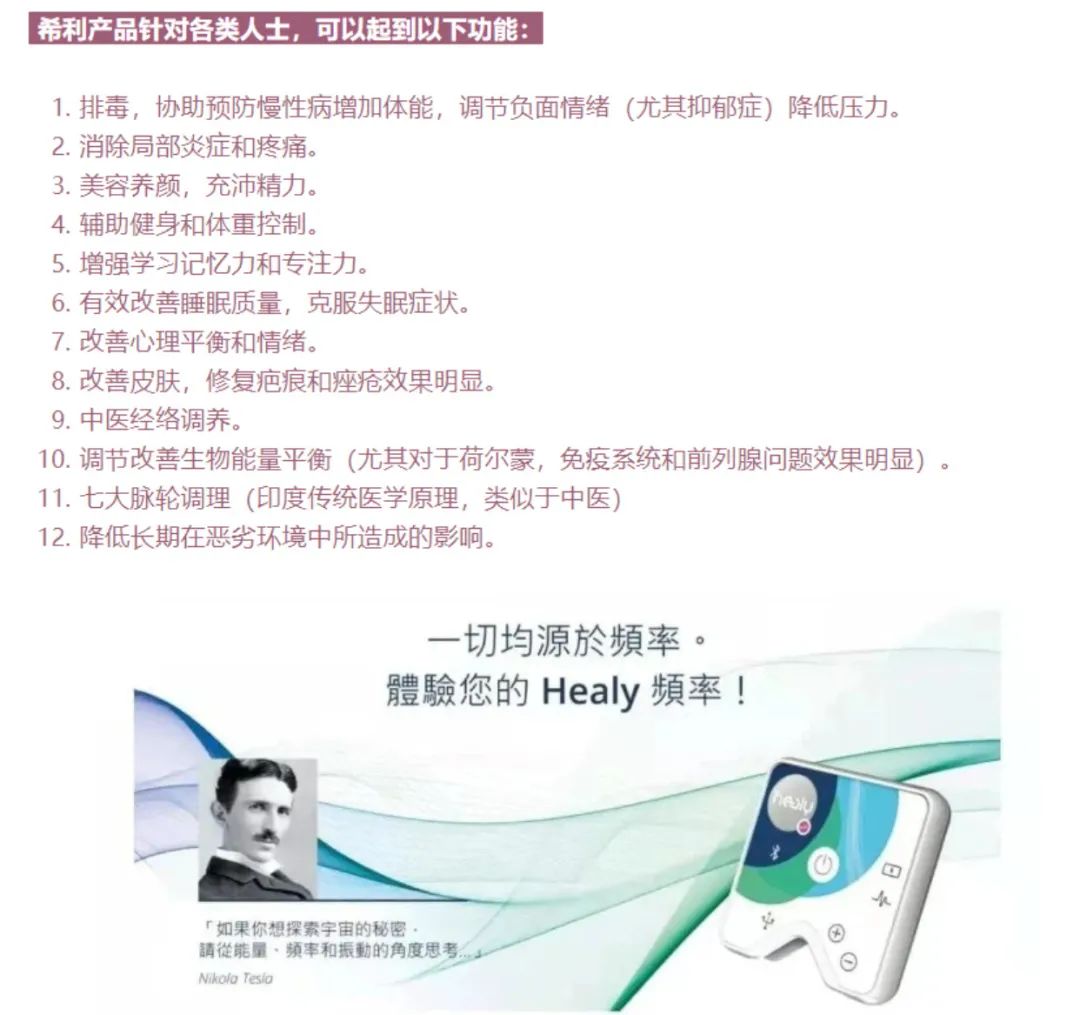 武汉的Bars课程导师钟杏则在售卖一种“可穿戴的量子传感微电流频率仪”Healy,称其是一款德国研发和制造的最新科技医学产品,“涵盖144000种电流频率,可以明显平衡人们的身体和心理健康情况”。