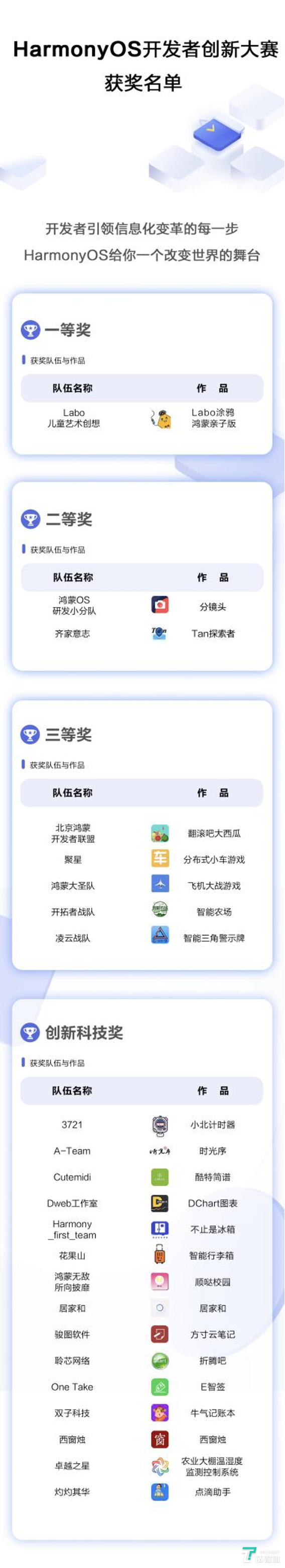 钛媒体5月24日消息,首届HarmonyOS开发者创新大赛颁奖典礼于深圳正式召开。本次大赛共历时5个月,超过3000支队伍的10000多名选手参赛,25000多位开发者参与了大赛学习,最终23支参赛队伍获奖,产出了多款有创新、有创意、有价值的优秀作品。