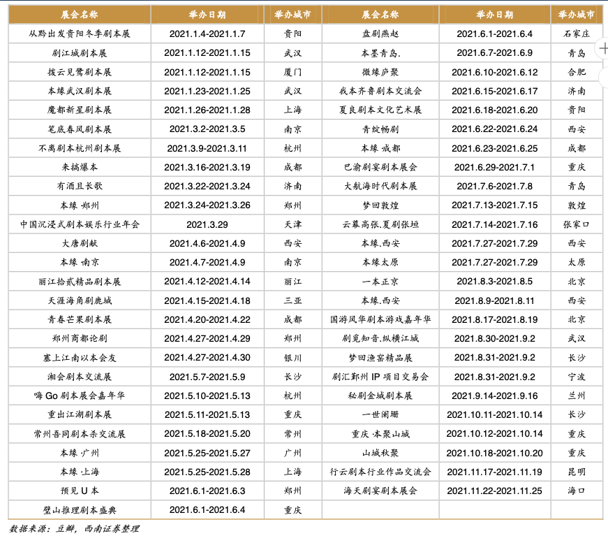 下图是西南证券整理的2021年的展会一览表。在2021年,已经有计划的展会多达51次。