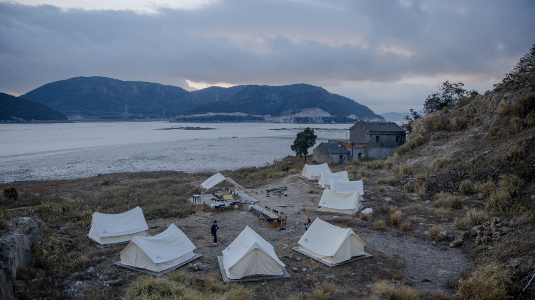 除了专业玩家,一些具备地理优势且风景优美的远郊民宿,也推出了露营业务。