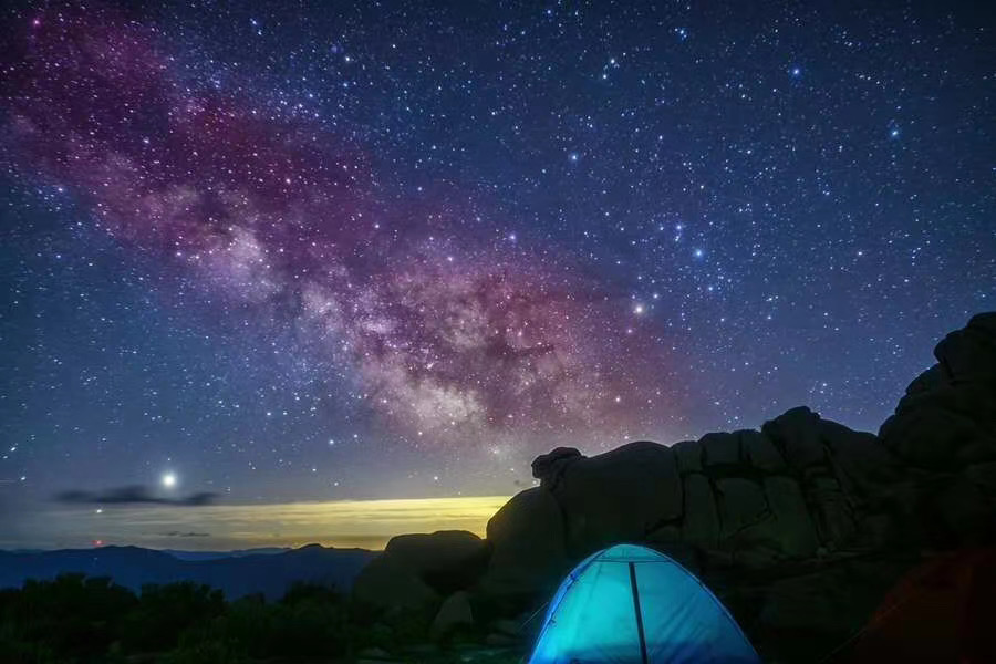 像于潇一样,越来越多的人开始爱上露营。正如露营爱好者申明(化名)所说,当你置身山谷,晚上看着星空,一些烦恼都被抛在脑后,这时,自然就能体会到露营的魅力。