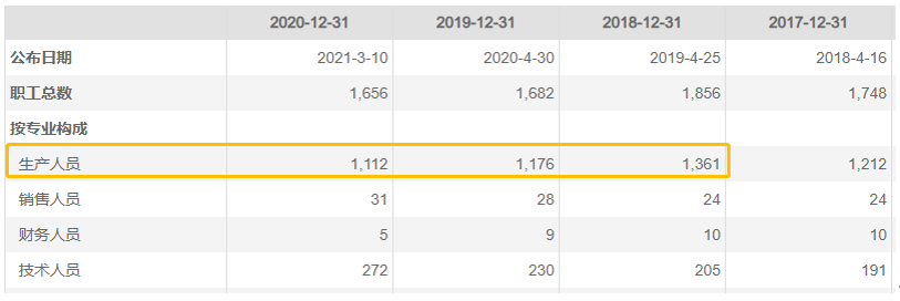 但从上表可见,正川一边对外募资要扩产,一边是生产人员的减少,明显的不合常理。