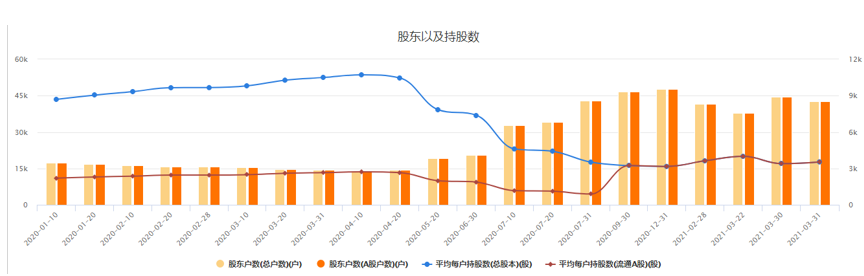 但追高买入的散户,就不那么好受了。2020年7月以后,公司股东人数翻了一倍以上,人均持股数减了一半以上。