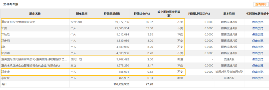 但是,正川股份有一个潜在的信号,邓勇对公司拥有绝对的控股权。从2018年年报可以算出,邓勇直接控制的与邓勇家族间接控制股本达到惊人的72.22%。这也为上述举报称的有能力操纵股价埋下伏笔。