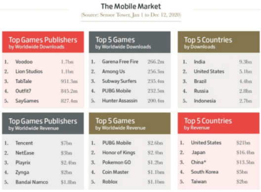 具体到市场来看,《堡垒之夜》选择半退场之后,PUBG M、COD M、荒野行动(在日本)、Garena Free Fire整体表现你来我往,市场可能存在容纳竞品进场厮杀的空间。Gamesindustry整理的2020报告中(不包含中国安卓市场),《Garena Free Fire》和PUBG M均在下载和收入的TOP 5。