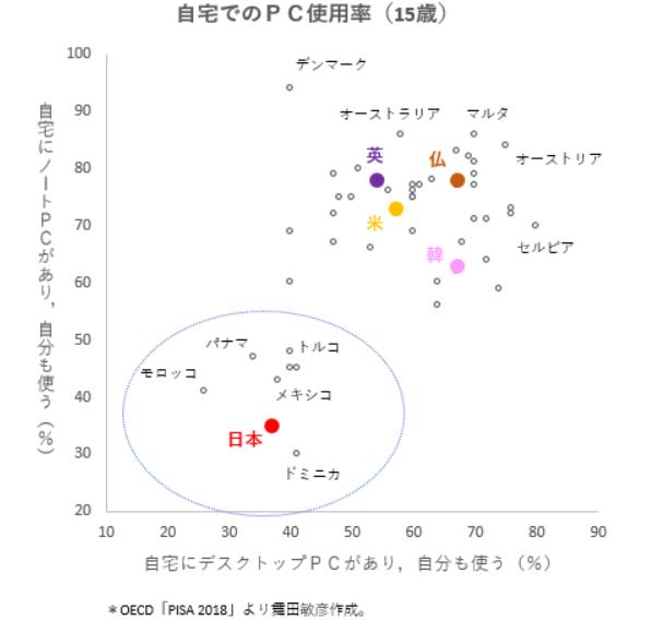 在以往年的印象中,我们往往会认为日本玩家对PC用户并不感冒。如图所示,2018年15岁日本用户PC普及率低于巴拿马,墨西哥,土耳其等国家。