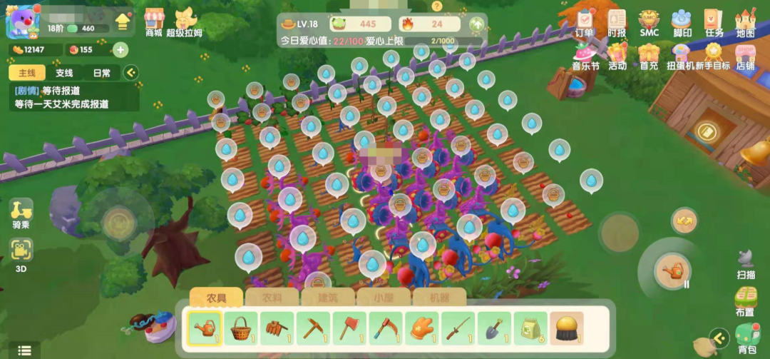 这些场景交互和社交功能其实是够用的,而且好友亲密度达到一定程度可以互为邻居,邻居会有更大的共同空间,也可以互相照顾农作物和牧场动物。