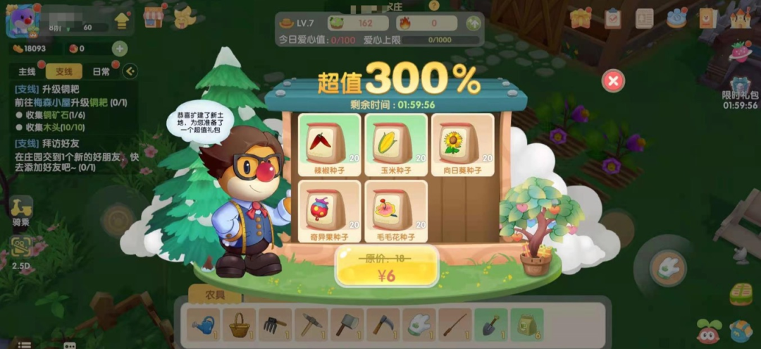 当然,从细节上来看,《摩尔庄园》还有很多优化的地方。主线任务和新手教程过于冗长繁杂,大部分玩家当前都是忽略任务,只玩种田和社交。甚至咕咕鸡跟很多人推荐的时候都强调,“熬过新手教程就好了。”