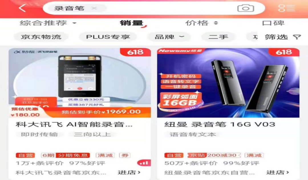 当我们在电商平台搜索录音笔时,发现列表基本都是智能录音笔,这就意味着,录音笔已经完成了从数码录音笔到智能录音笔的迭代。