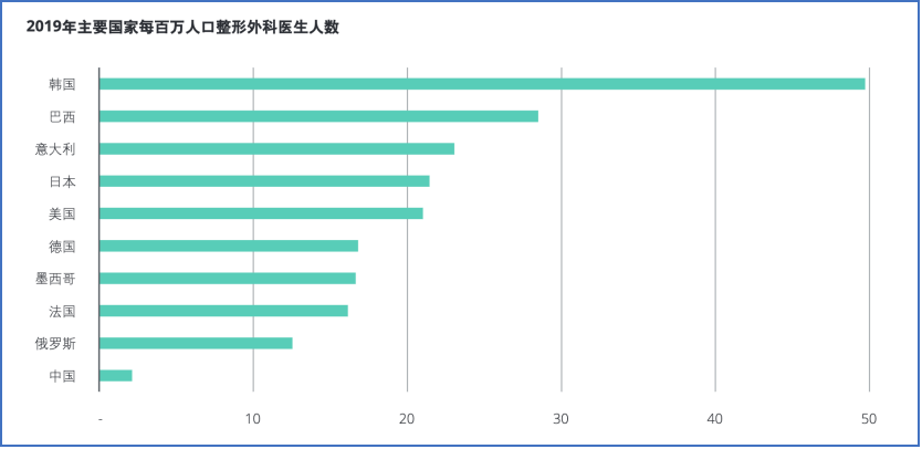 另外一个判断行业火热的标准是“人不够用了”。对比快速增长的医美市场,我国专业整形医生资源稀缺,每百万人口拥有的医美医生人数远低于世界其他国家,缺口巨大。但成熟医美医生培养周期较长,这个缺口很难快速填补。
