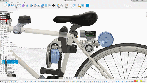 稚晖君要改造的是一辆“死飞”——没有刹车且结构简单的公路自行车,通过在CAD上进行建模就能开启改造之路,他给这辆车装上了两个巨大的无刷电机、一个控制龙头的舵机、一个RGBD深度相机传感器、一个加速度计、一个陀螺仪、一个激光雷达、一个6S航模动力锂电池、一个主控计算模块。