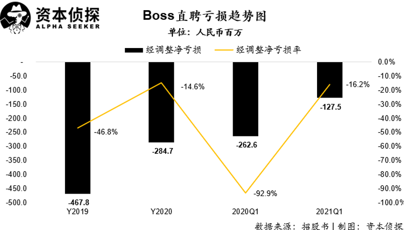 不过,尽管公司拥有极高的毛利水平,但BOSS直聘在报告期内却一直处于亏损状态。