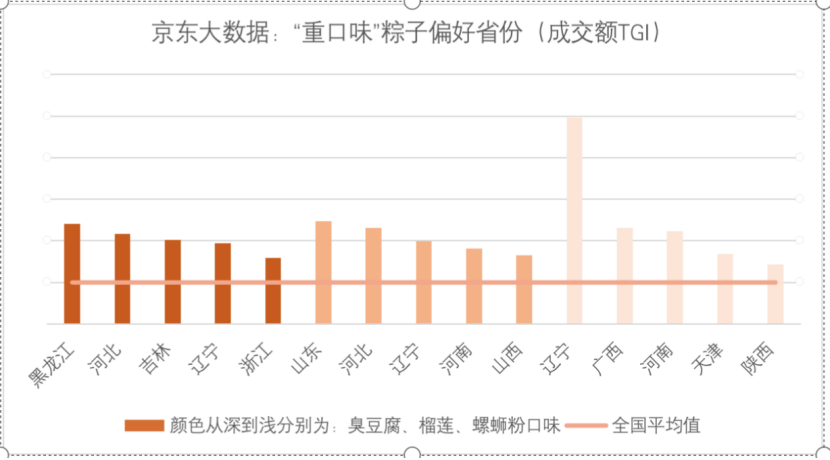 京东数据显示,最受欢迎的低温粽子口味是螺狮粉、榴莲、臭豆腐。今年5月1日至今,成交金额同比增长2.8倍。上述三种口味中,榴莲口味销量最大。