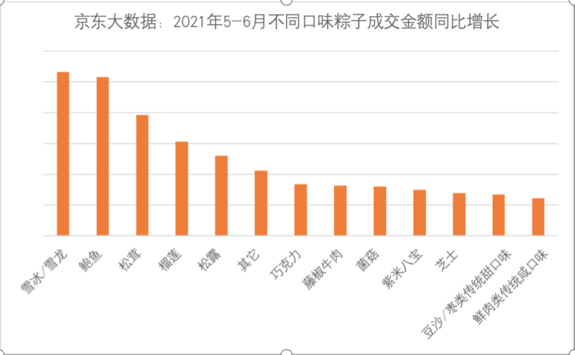 京东大数据研究院的数据显示,粽子在6月1日提前爆发,全天成交金额同比增长5倍。五芳斋、稻香村、真真老老、广州酒家、北京稻香村成为消费者下单首选的TOP5品牌。