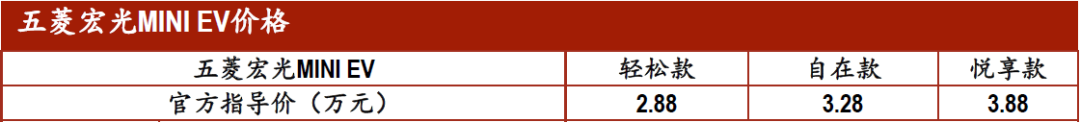 一是足够便宜的价格,大多数人都买得起。mini EV价格为2.88-4.36万元,是首款价格下探到3万元以下的电动车,也是包含燃油车在内乘用车中价格最低的车型,对于用户而言,“这个价格,还要什么自行车”。