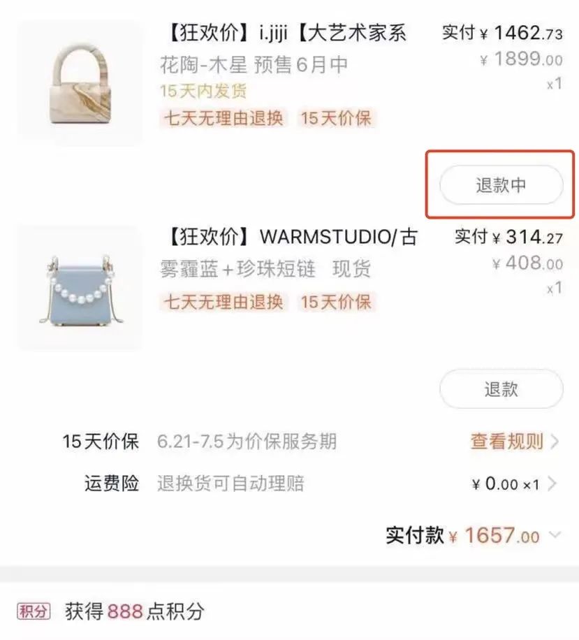 你想买一个包,直接购买需要付400多元,如果再加购一个标价1800多的包,因为凑够了满减,可以用优惠券,那个想要的包包价格骤降到300出头,优惠生成后,再把价值1800多的包申请退款。这通神操作就可以省掉将近100元。