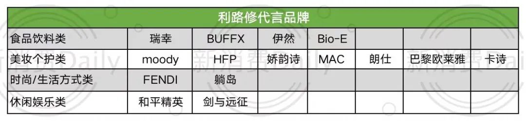 值得一提的是,在利路修官宣的商务合作中,除了常规的“代言人”称号,还有“首席能量官“、”品牌大使“、”闪耀梦想家“等多种title。还有一些品牌,虽然未给利路修冠以头衔,但却趁着热度与利路修合作拍摄了视频,比如,朗仕又让利路修拍摄情人节礼盒广告,奢侈品牌FENDI邀请利路修拍摄夏日系列的时尚大片,护肤品牌HFP请利路修合作拍摄了刷酸vlog。