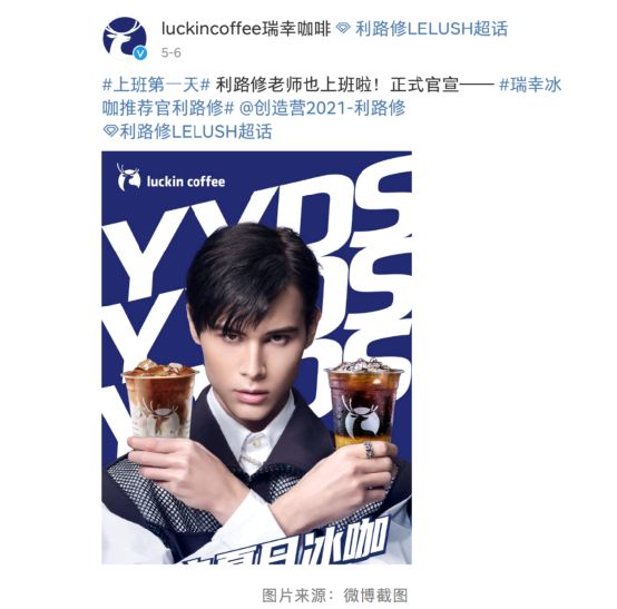 利路修被品牌宠爱,始于瑞幸咖啡。官宣微博上,配着文案:利路修老师也上班啦!