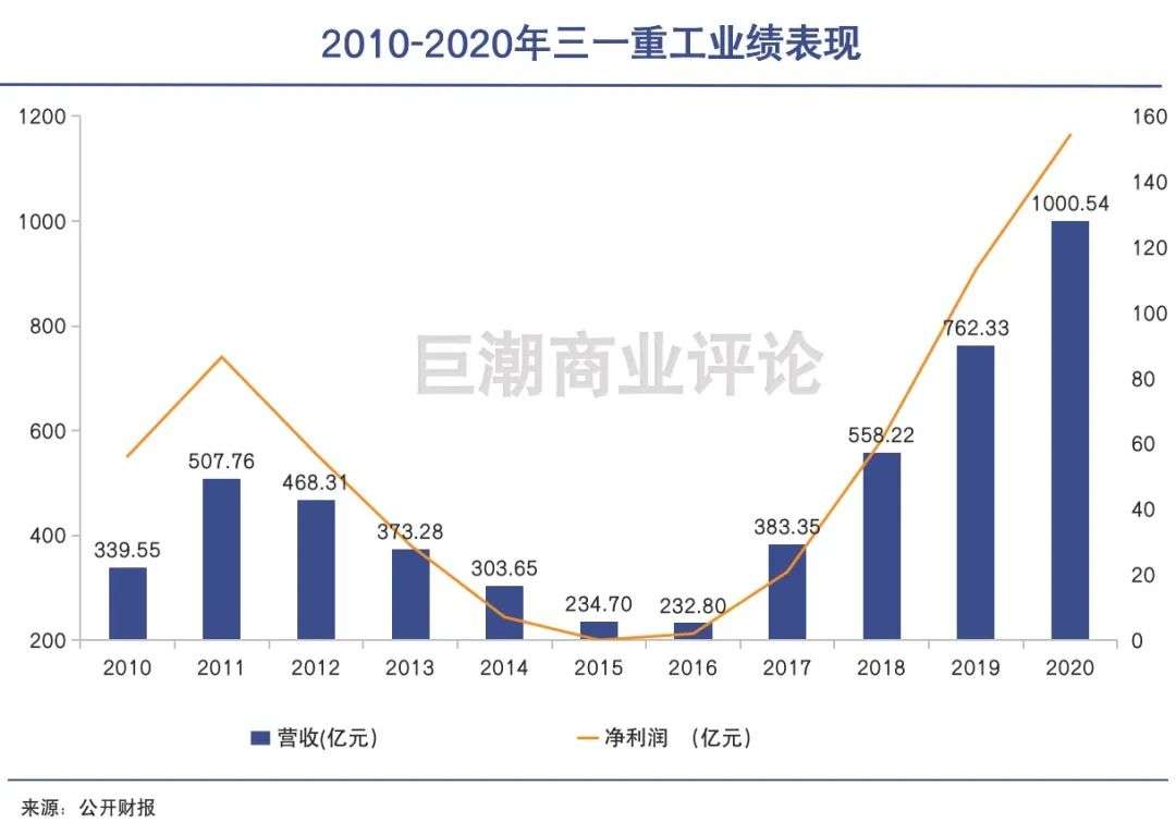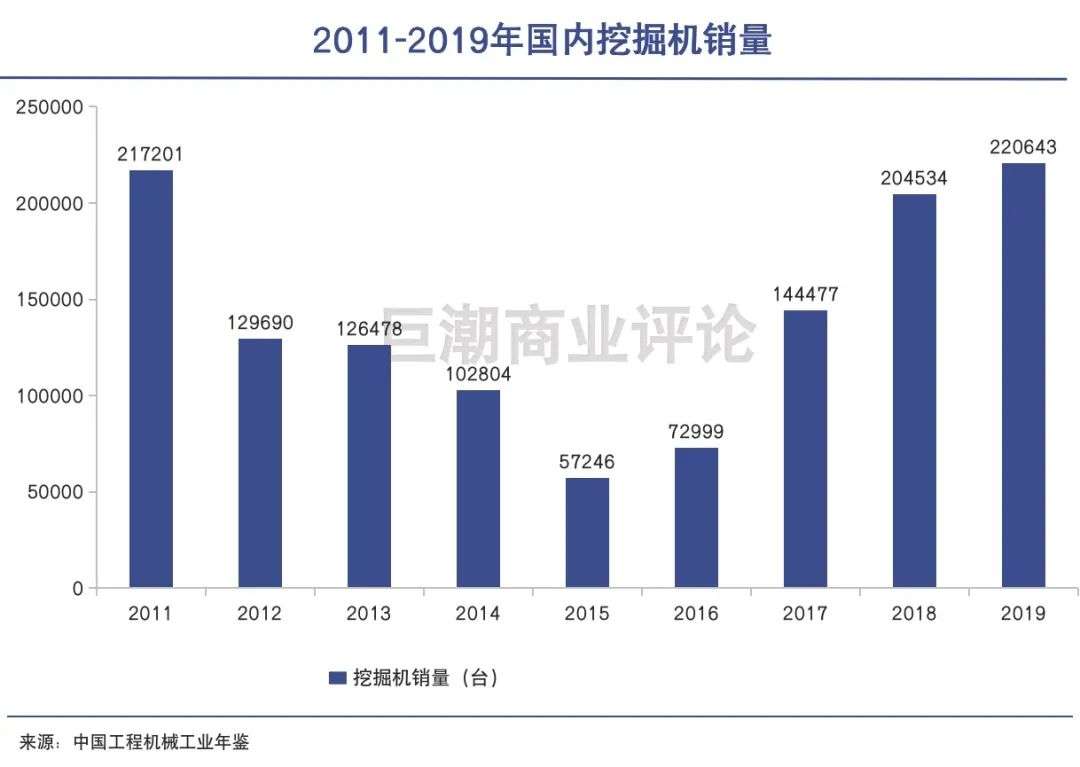 这必然会在国内挖掘机的销量数字上有所反应。2019年,国内挖掘机销量为220643台,已经超过了2011年的历史峰值。而2020年国内挖掘机销量则续创辉煌,达到了292864台。三一重工的营收也首次突破千亿,迎来了历史最优的业绩。