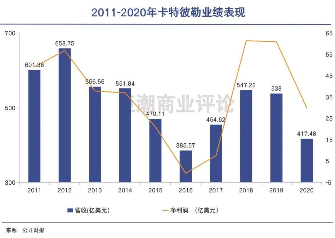 以卡特彼勒为例,其业务范围遍布北美(42%)、亚太(24.54%)、欧洲非洲中东(23.61%),但近几年的业绩表现同样具有较大的波动。