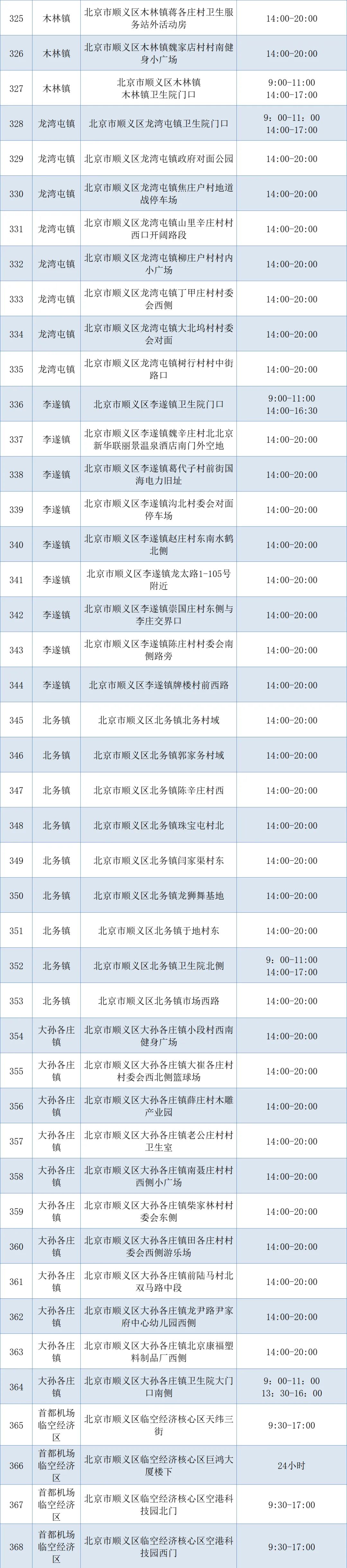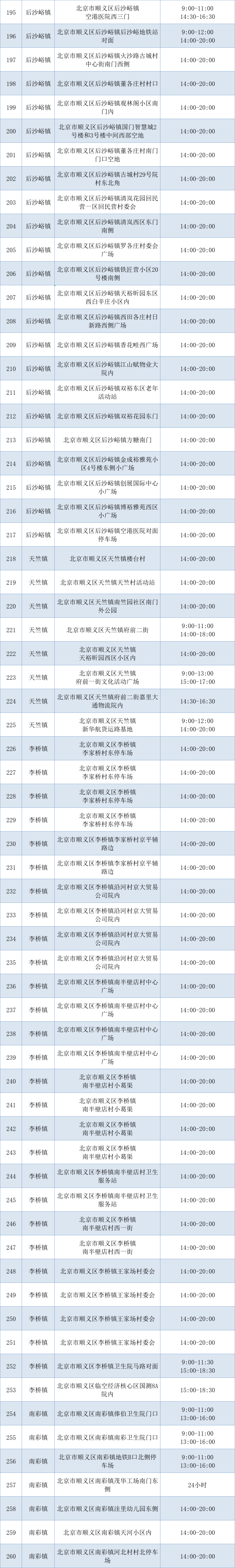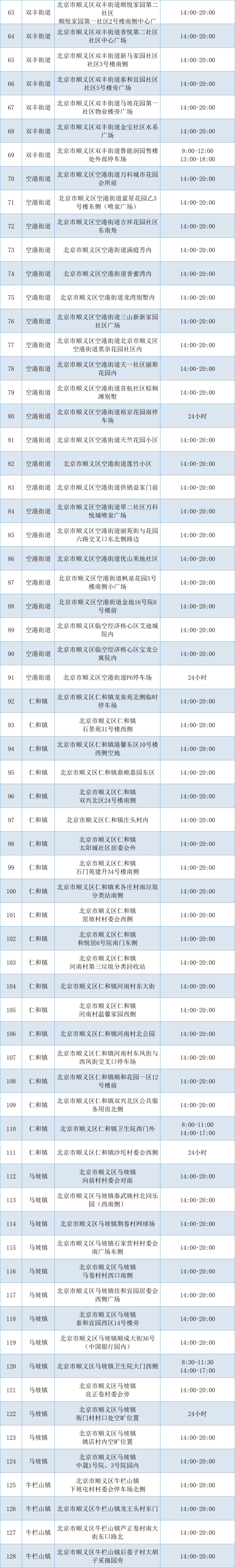 72 | 永顺镇 | 物资学院东路与富河大街交叉口 | 8:30-11:30 |