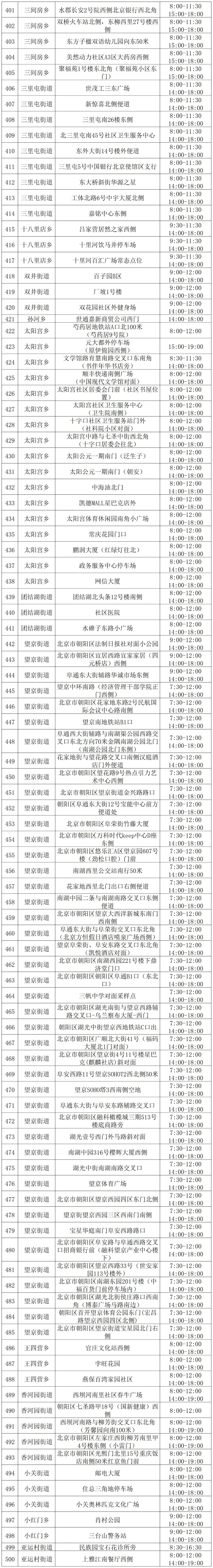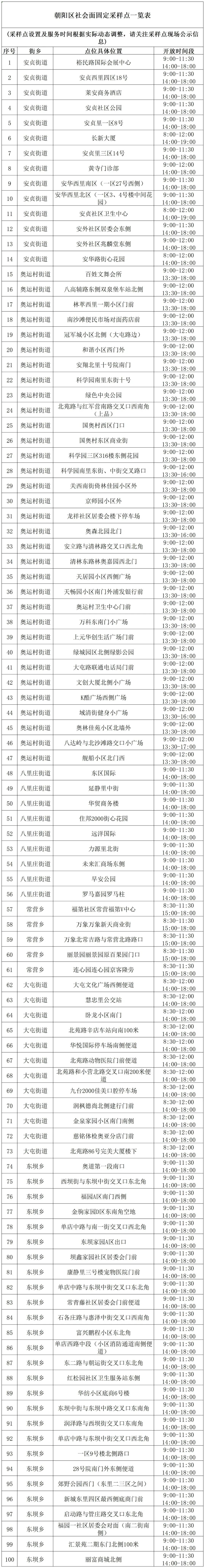朝阳区优化调整采样点位,共开放采样点位1489个,其中社会面固定采样点位553个。具体名单如下——