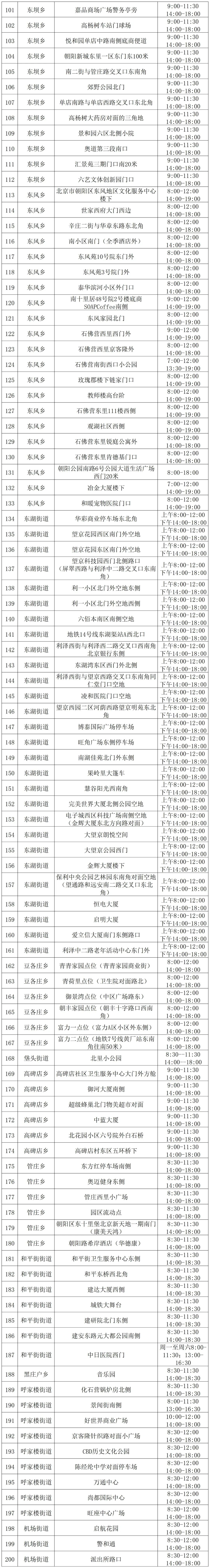 46 | 潞邑街道 | 潞通新路(东潞苑小区高层东门) | 8:00-14:00 |